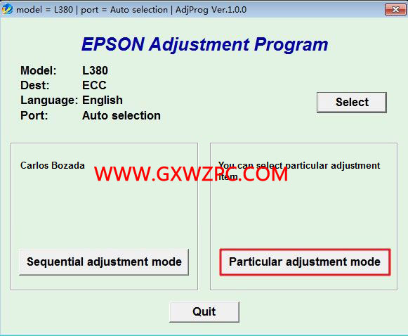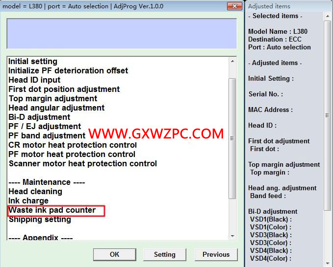 3. 選擇Waste ink pad counter(廢墨計數器)